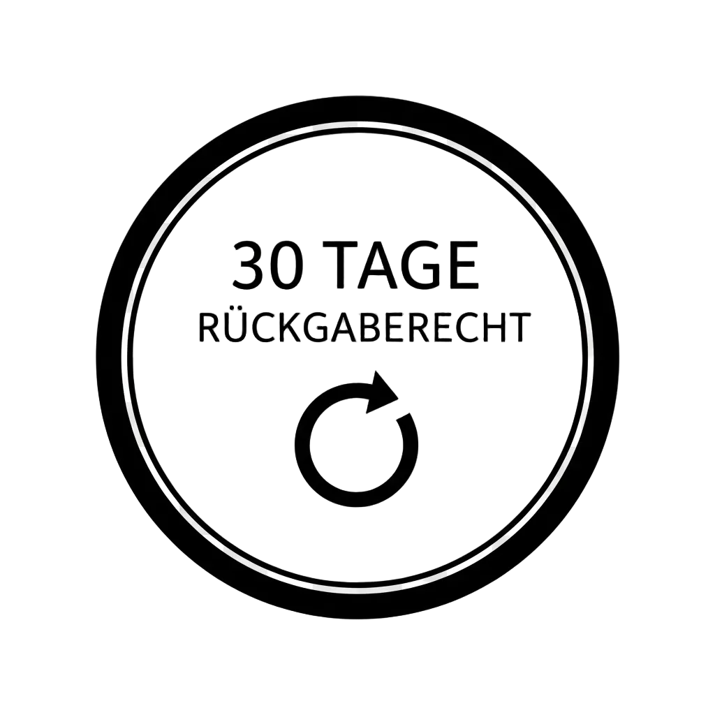 Wir sind überzeugt von der Qualität unserer Produkte. Deshalb kannst du alle Produkte 30 Tage lang risikofrei testen. Wenn du nicht zufrieden bist, sende sie einfach zurück – wir erstatten dir den vollen Kaufpreis.